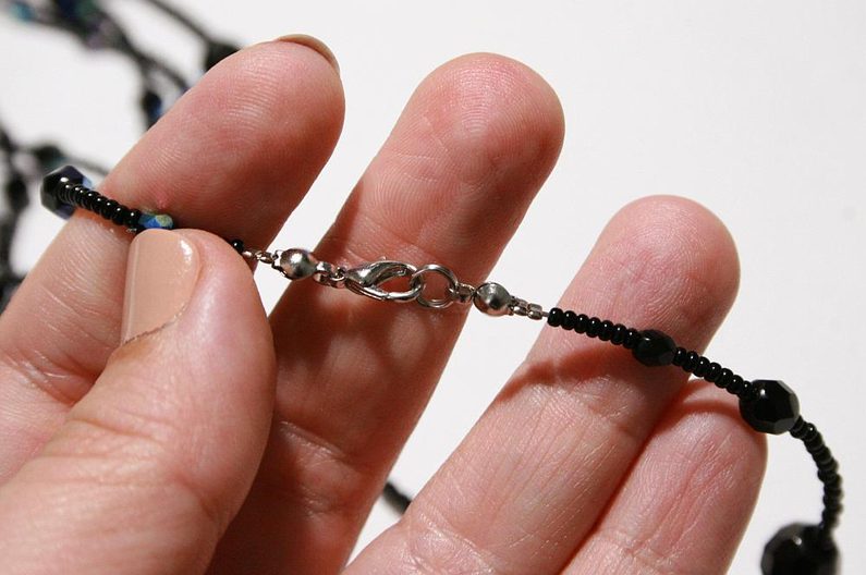 Zamáčkněte zamačkávací korálky, uštípněte kleštěmi zbytek lanka a pak udělejte to samé z druhé strany, připevněte zapínání a máte hotovo. Výhoda takového šperku je, že ho můžete nosit i jako náramek, anebo udělat několik otoček kolem krku a mít víceřadý náhrdelník.