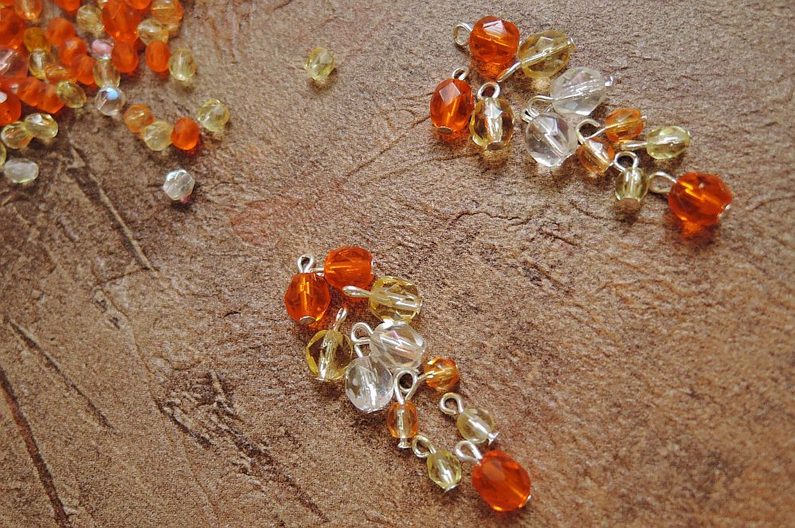 Vyberte si ze směsi broušené korálky, ze kterých budete náušnice skládat. Ideální je nahoru větší a dolů menší, aby se náušnice stylizovaly do tvaru hroznů.