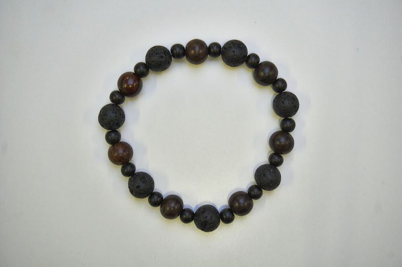 Poté stačí navlékat dřevěné a minerálové korálky dle obrázkového vzoru.