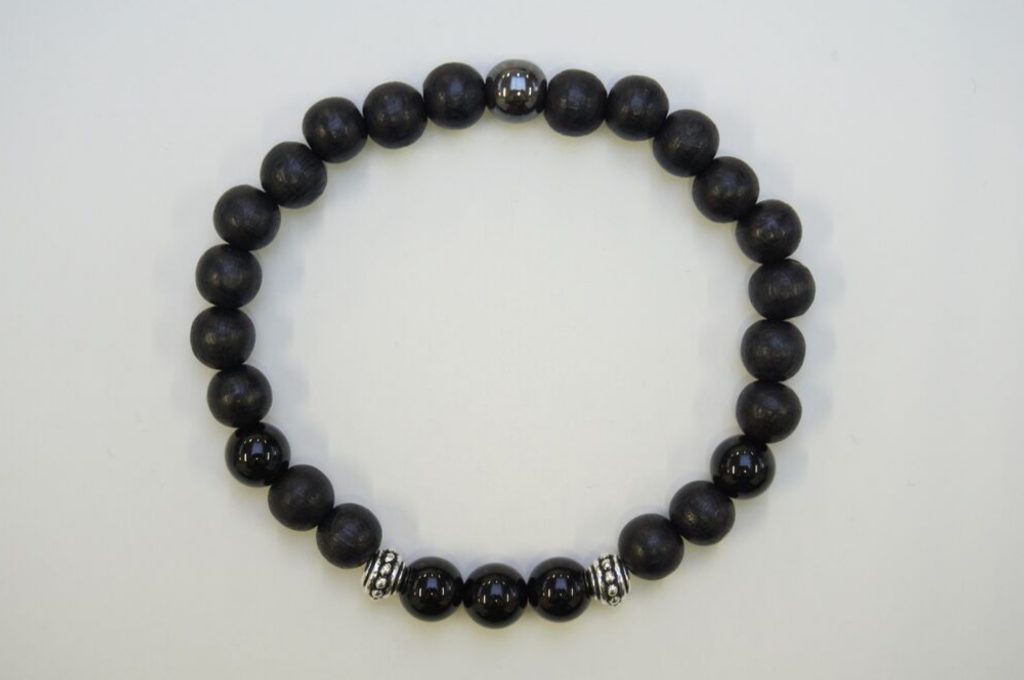 Poté stačí navlékat dřevěné a minerálové korálky a TierraCast komponenty dle obrázkového vzoru.