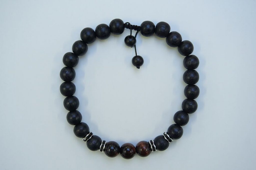 Poté stačí navlékat dřevěné, minerálové korálky a štrasové rondelky dle obrázkového vzoru.