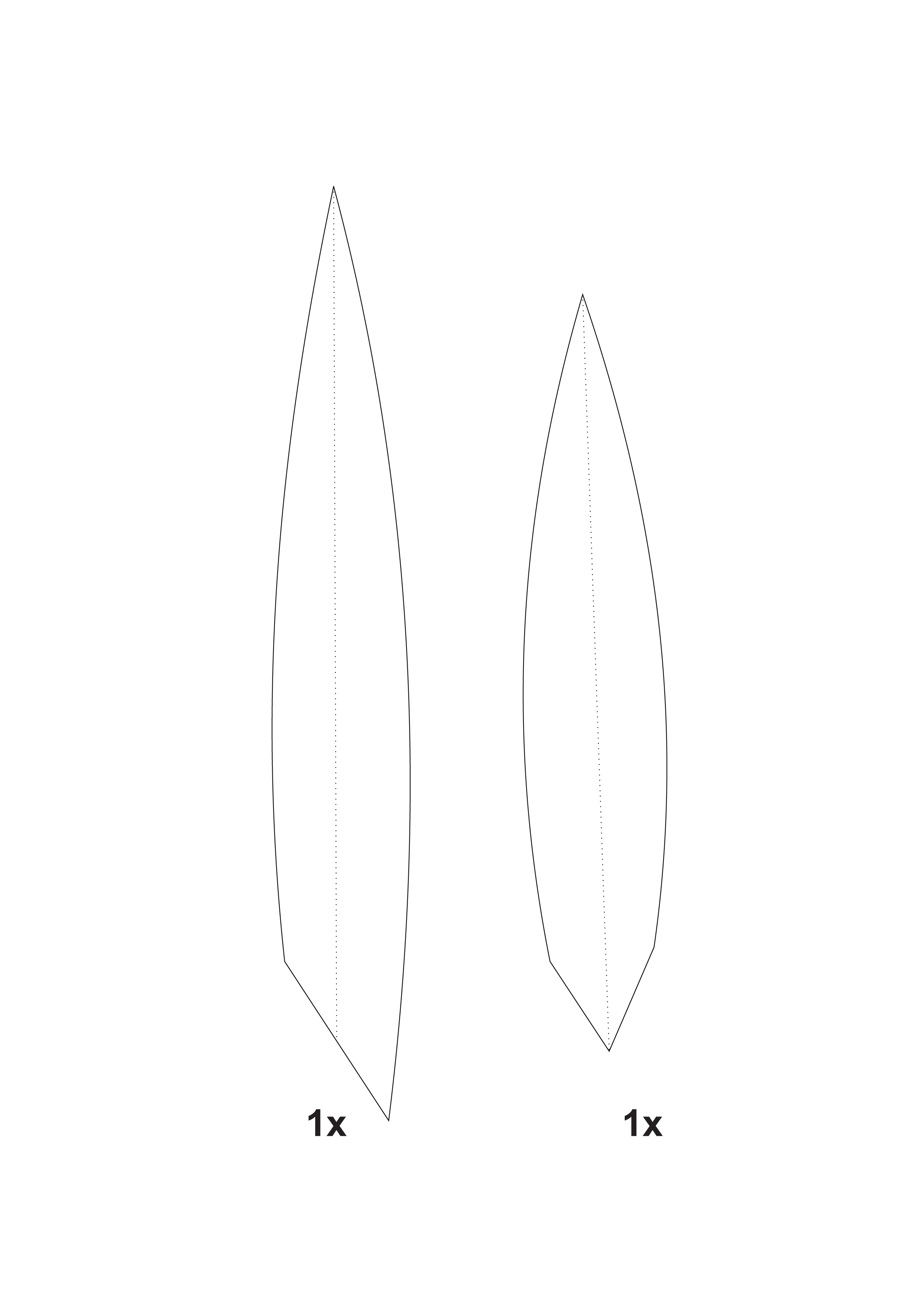 Květ máme zaschlý a nyní přilepíme listy. Listy přilepíme na slepenou hranu květu. Nejdříve kratší list a následně delší list. (Lepidlo na listy nanášíme jen ve spodní části cca2 cm).