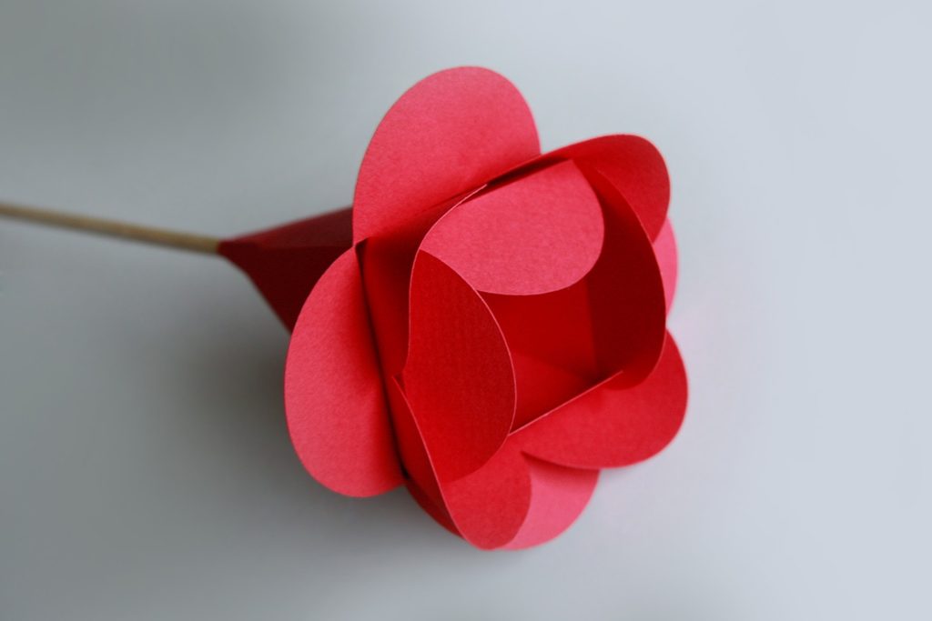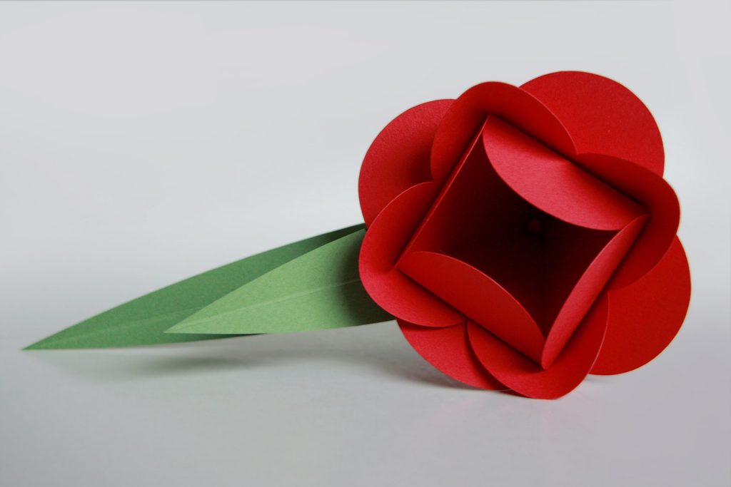 Květ uzavřete poskládáním dle obrázku. Dovnitř můžete dát drobnost nebo bonbóny.