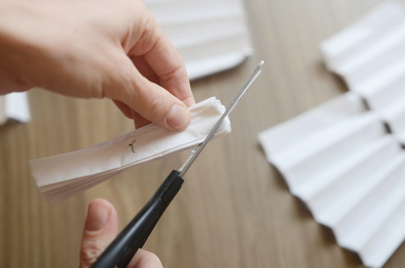 • Pokud chcete pompomy menší, harmoniky rozstřihněte v polovině. Stále však musí být možné je dobře přeložit na polovinu.