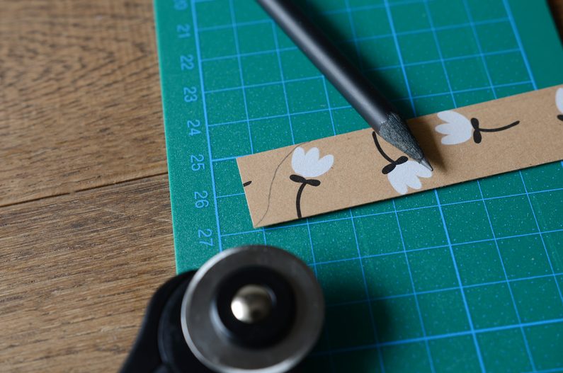 Na kratší straně papíru si odměřte a odřízněte dvoucentimetrový pruh.