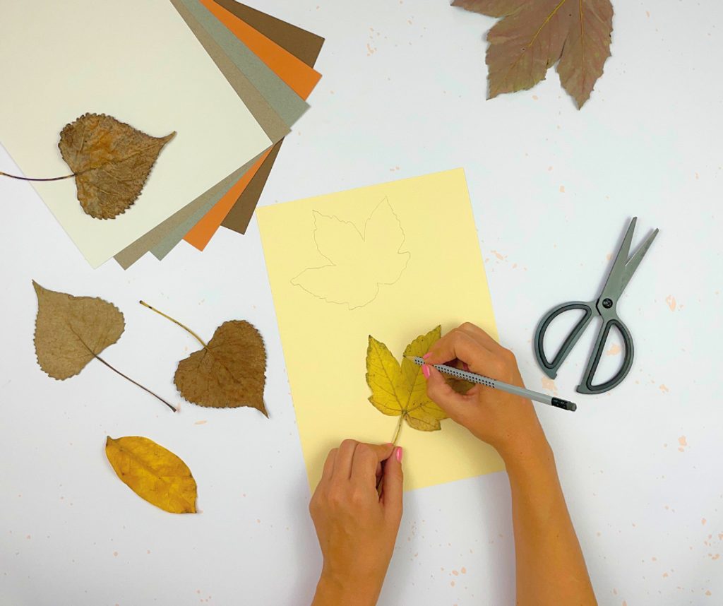 Nejprve si překreslete podzimní listí všech různých druhů na barevné papíry.