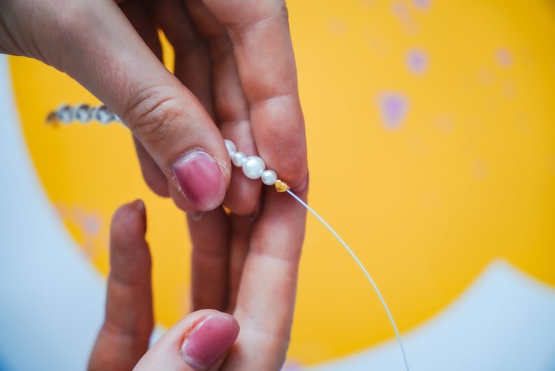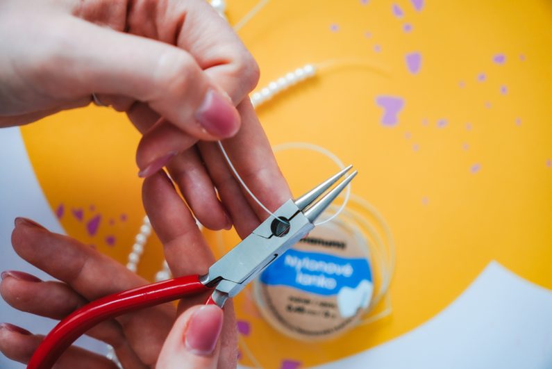 Pomocí bižuterních kleští si ucvakneme nylonové lanko v požadované délce o něco delší, než je obvod našeho krku.