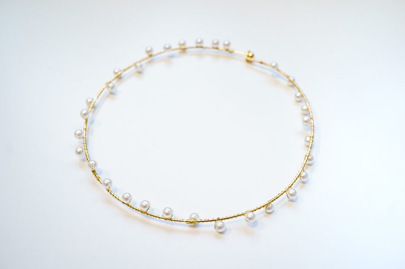 Konec drátku obtočíme začátek obruče, poté navlékneme perlu a opět obruč 3x obtočíme.