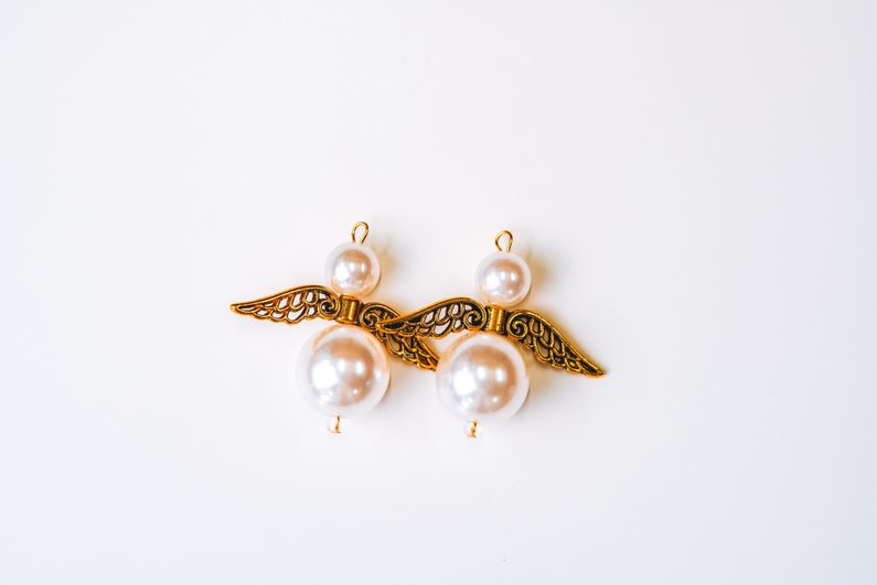Navlečeme velkou perlu, křidélko, menší perlu a můžeme ozdobu zakončit tím, že pomocí kulatých kleští uděláme očko.