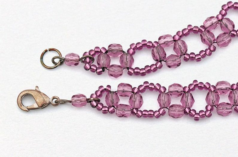 Stejným postupem (střídáním oček z broušených korálků a rokajlu) dokončíme řetízek na druhé straně.