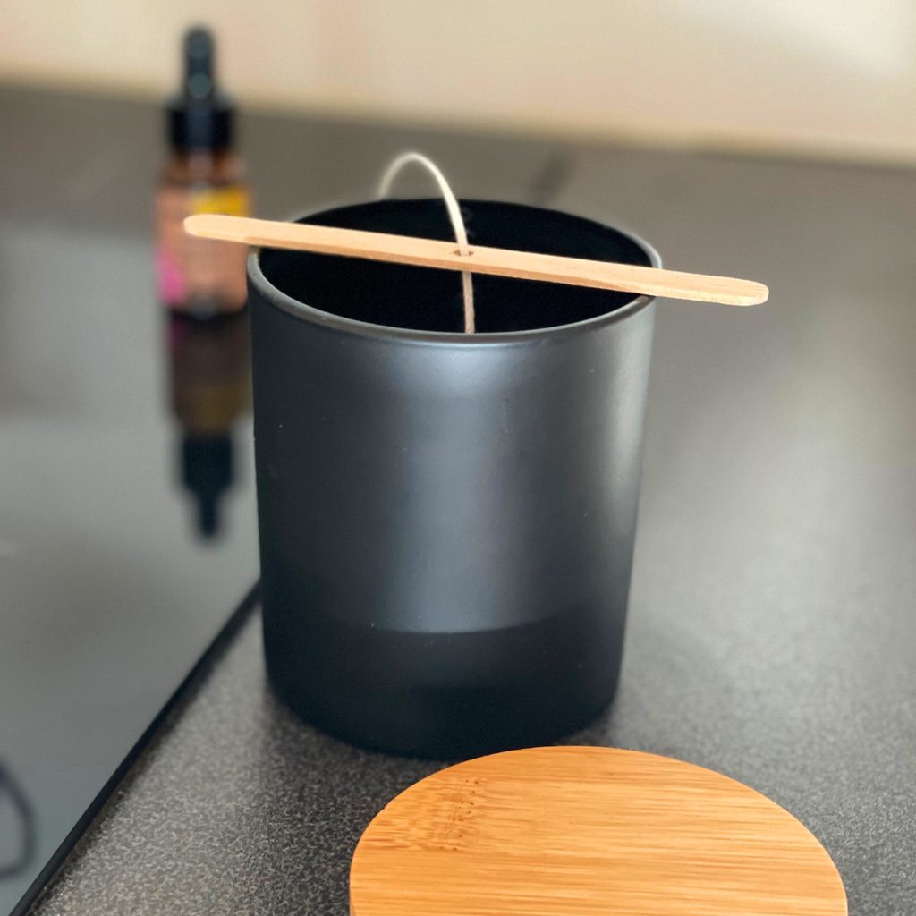 Připravte si nádobu, do které umístíte knot. Vycentrovat vám ho pomůže držáček, který po celou dobu tuhnutí udrží knot uprostřed nádoby.
