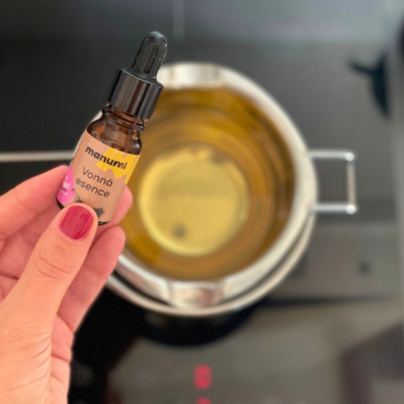 Do rozehřátého vosku nakapate vonnou esenci podle vašeho výběru.
