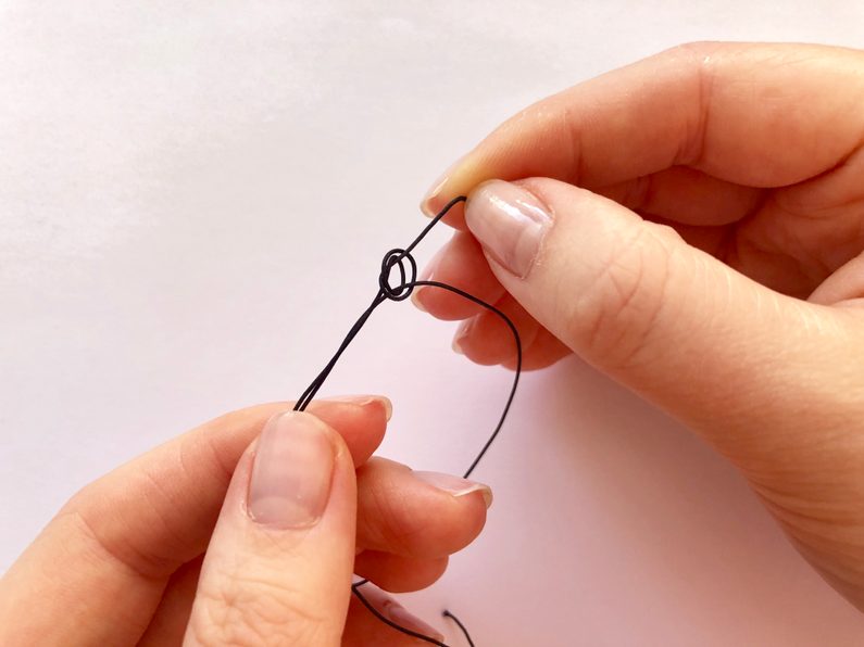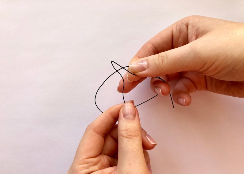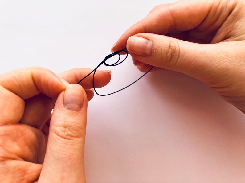 Tento konec protáhneme z vnější do vnitřní strany oka, aby nám vznikla smyčka.