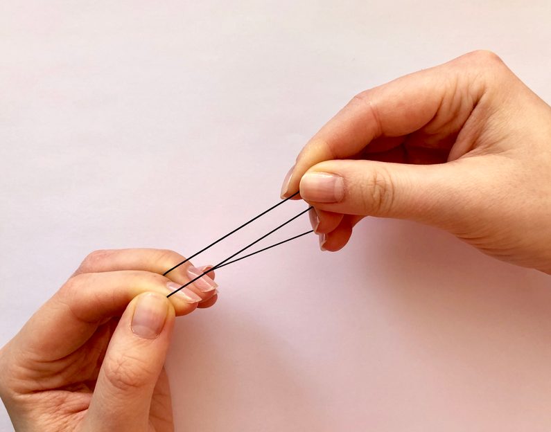 TIP: touto technikou lze vytvořit i náhrdelník, akorát délky šňůr musí být delší, aby odpovídaly obvodu krku.