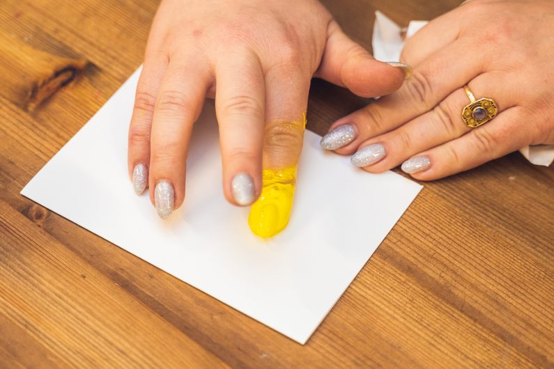 Fantazii se meze nekladou. Nechte své ratolesti prsty “poťapat” přáníčko. Pokud kombinujete více barev, nechte vždy nejprve jednu barvu zaschnout. Jinak by se mezi sebou rozmazaly.