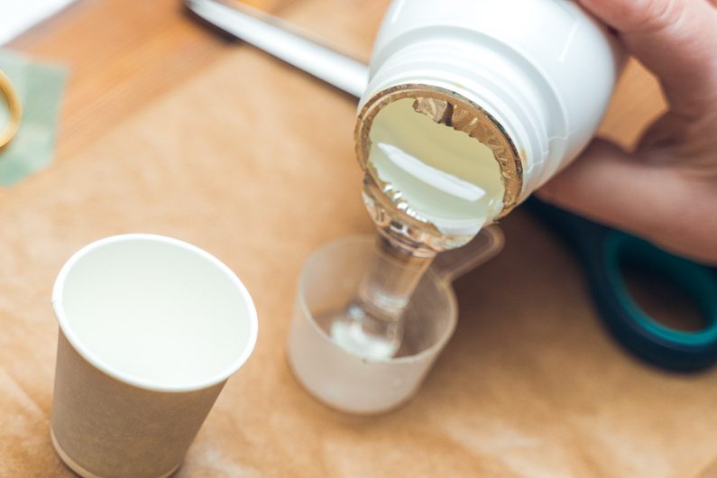 • Rozmícháme si křišťálovou pryskyřici podle instrukcí a necháme ji 30 minut odstát, aby z ní vyprchaly bublinky.