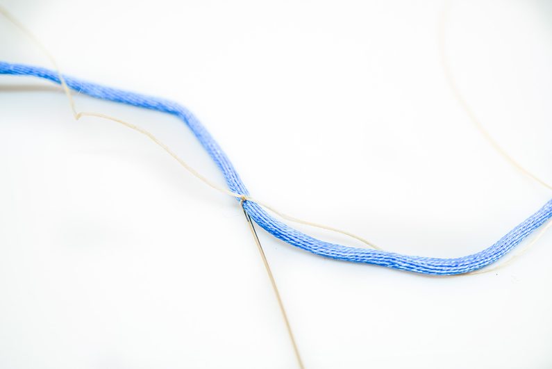 Aby se nám korálky lépe navlékaly, doporučujeme pomoct si jehlou s nití.