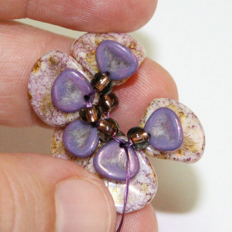 Prošijeme se nahoru, vyjdeme v jednom z nejbližších korálků C a poté přidáme mezi korálky C po jednom korálku Solo. Znovu vyjdeme v jednom z korálků C a jen obejdeme kolem korálky C. Dobře stáhneme do tvaru kytičky.