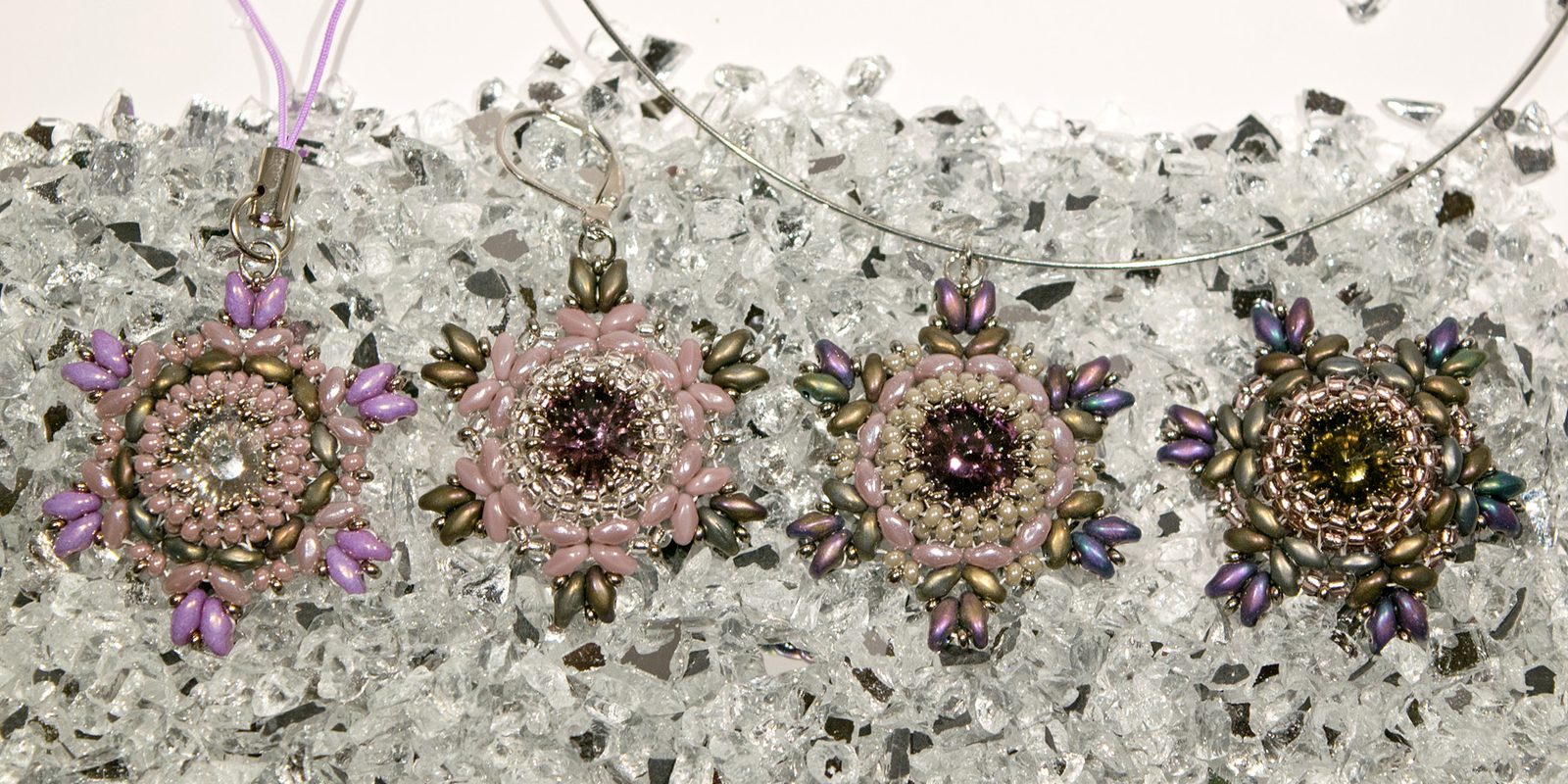Hotové sněhové vločky můžou posloužit volně jako dekorace nebo je můžete pomocí kroužku zavěsit na šňůrku, obruč či náušnicové zapínání. Pokud budete mít dostatek trpělivosti, můžete si takto vyrobit celý ozdobný řetěz jako vánoční dekoraci.