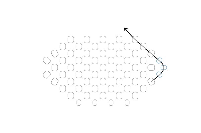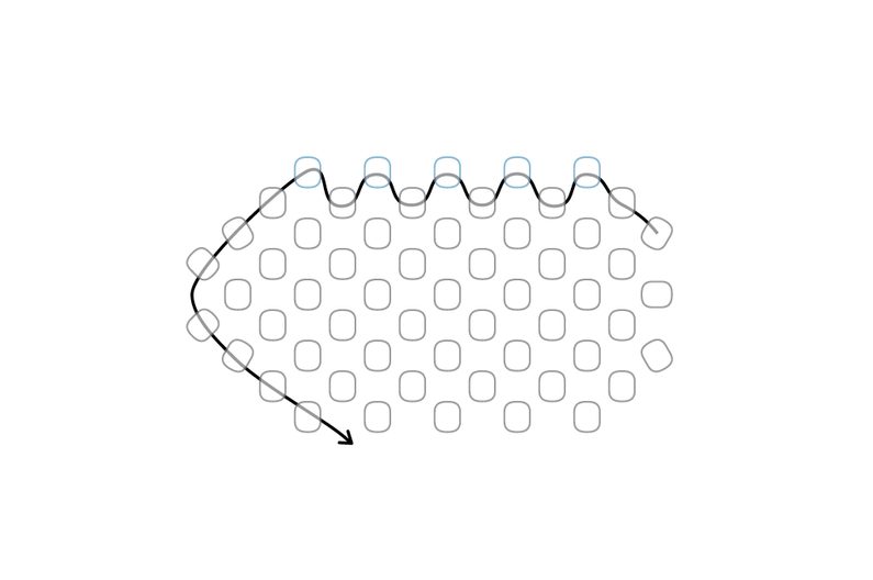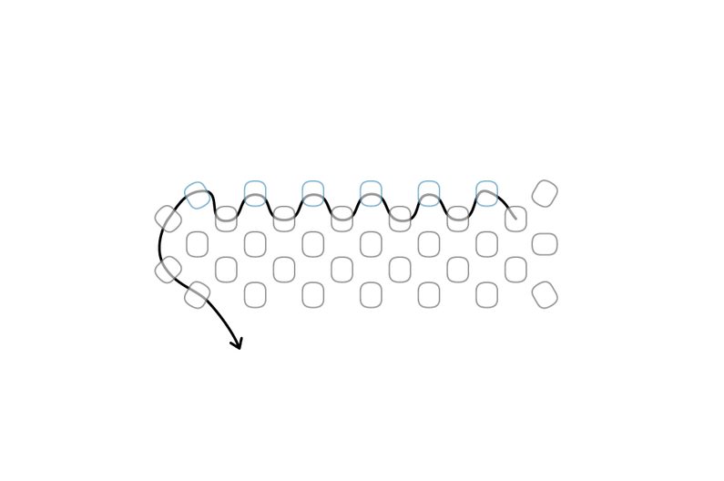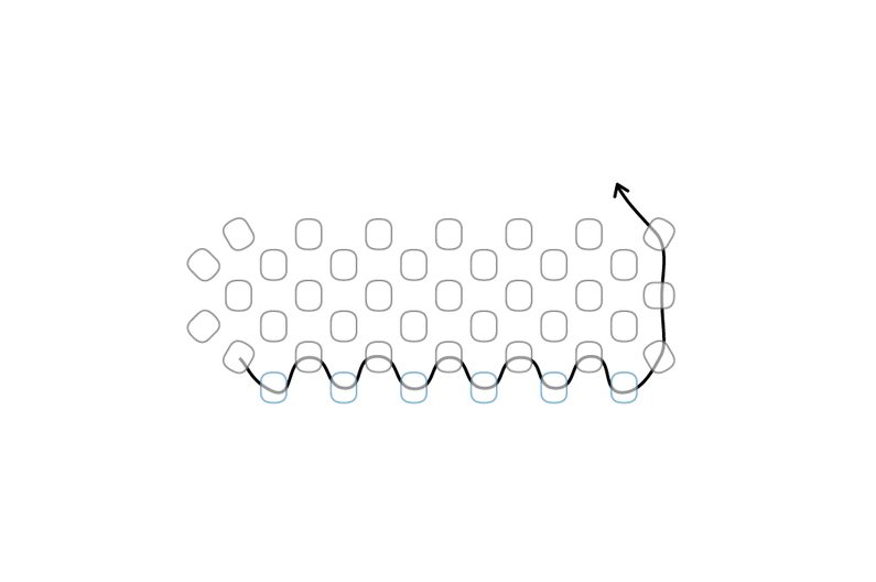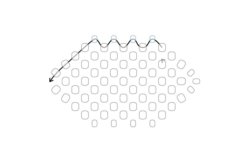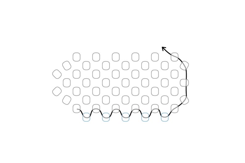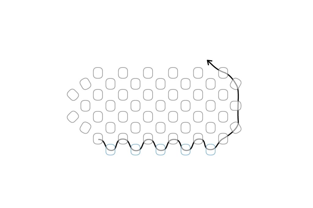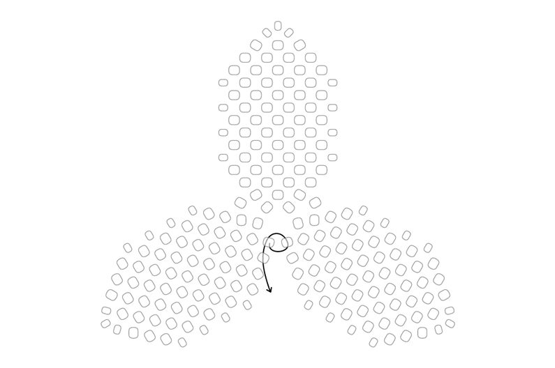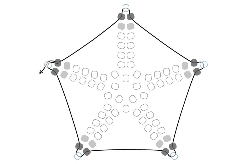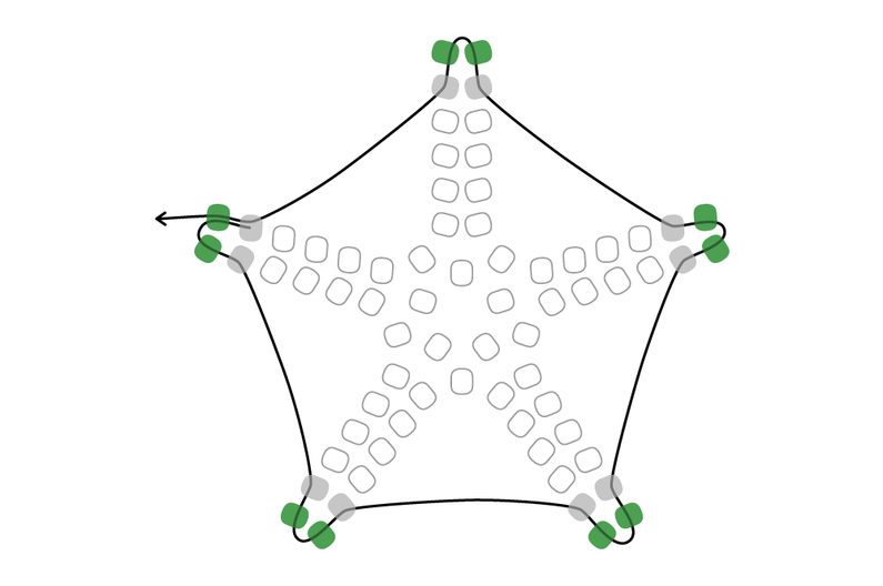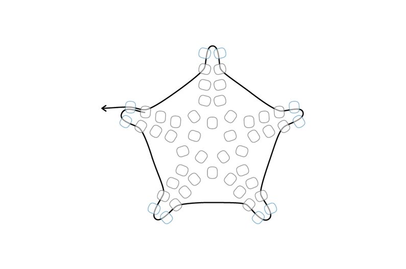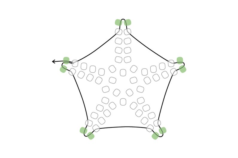 Takto pokračujeme dokola. Tvoří se nám hvězdička. Dokončíme řadu.