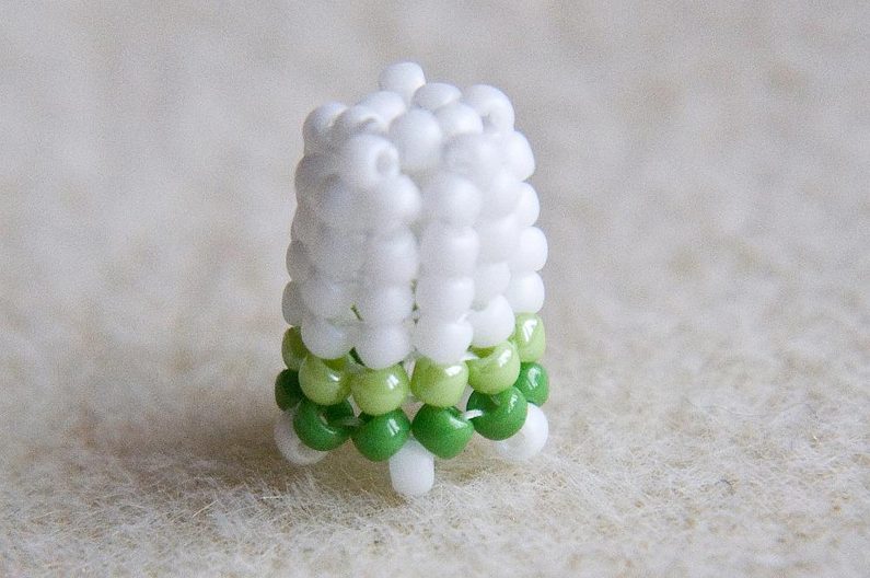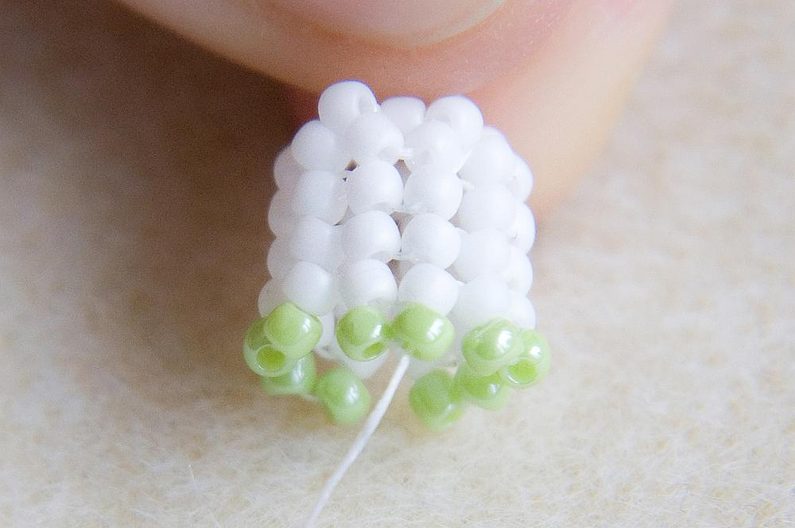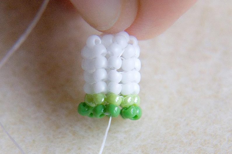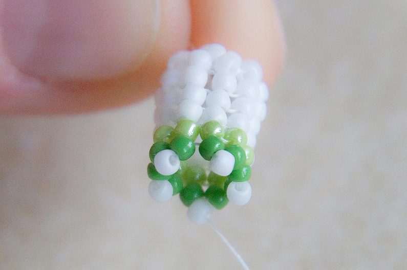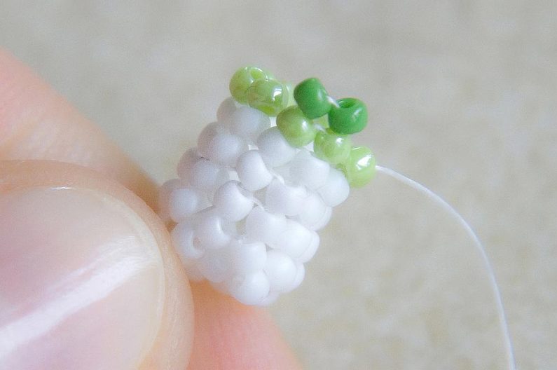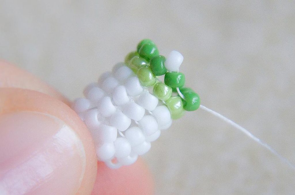 Nyní zopakujeme Krok 5, ale budeme šít světle zelenými korálky.