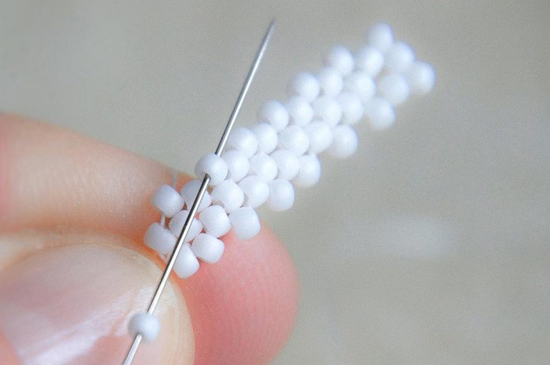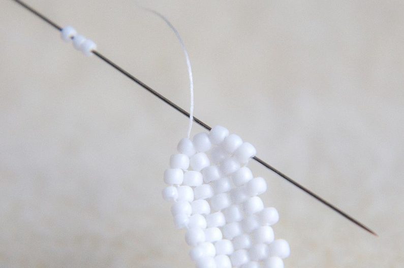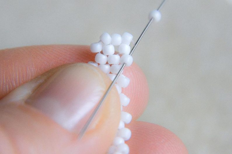 Na konci řady prošijeme tři korálky za sebou.