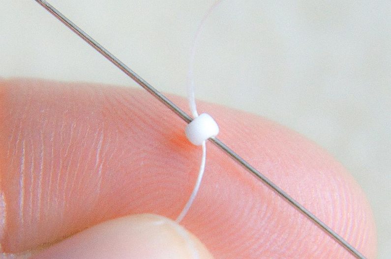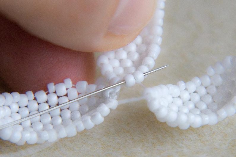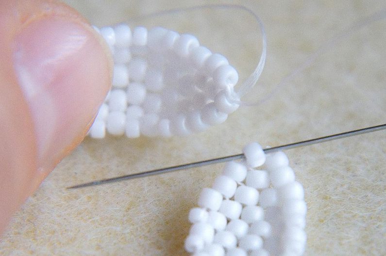 Poslední dva korálky prošijeme.