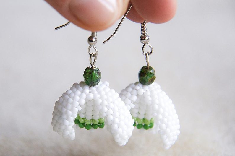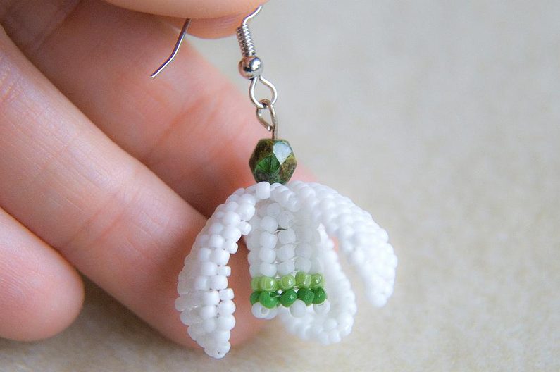 Podle návodu ušijeme i druhou náušnici. Máme hotovo. Sněženky můžou vykvést. :)