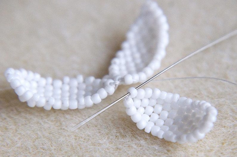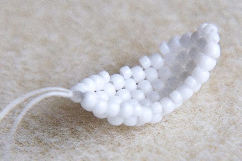 Ušijeme si okvětní lístky. Budou tři a na závěr je sešijeme a spojíme ketlovacím nýtem s kalíškem. Okvětní lístky budeme šít peyotovým stehem.