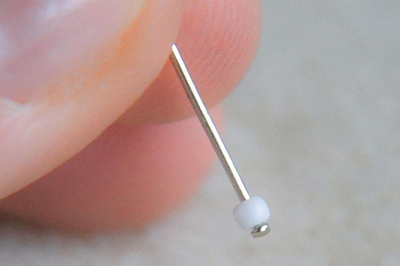 Ketlovacími kleštěmi uděláme očko. Pokud máme jehlu moc dlouhou, kousek odštípneme štípacími kleštěmi.