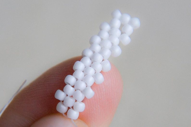 Nyní budeme mezi každé dva korálky přidávat 2 TOHO 11/0.