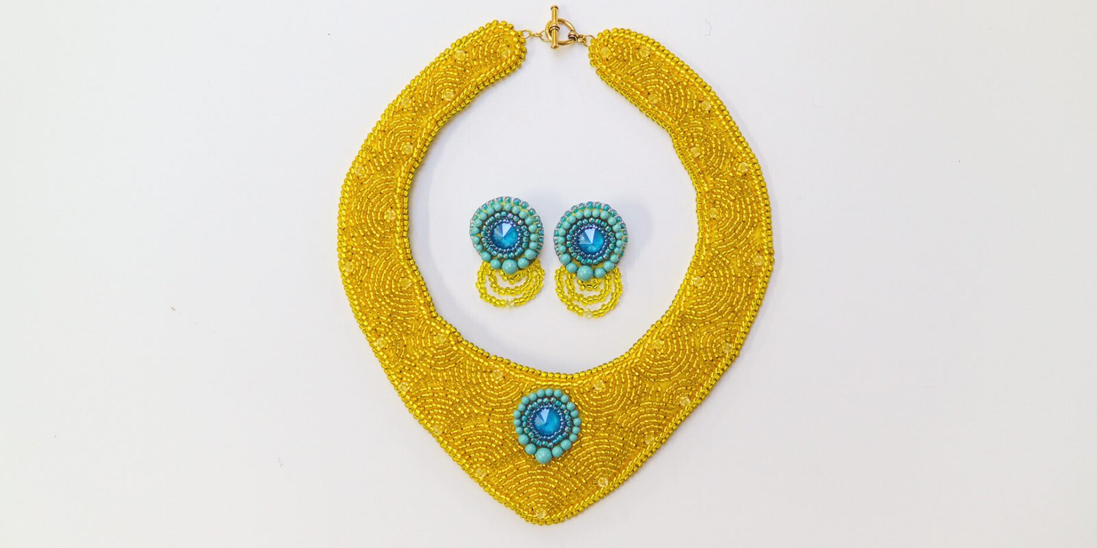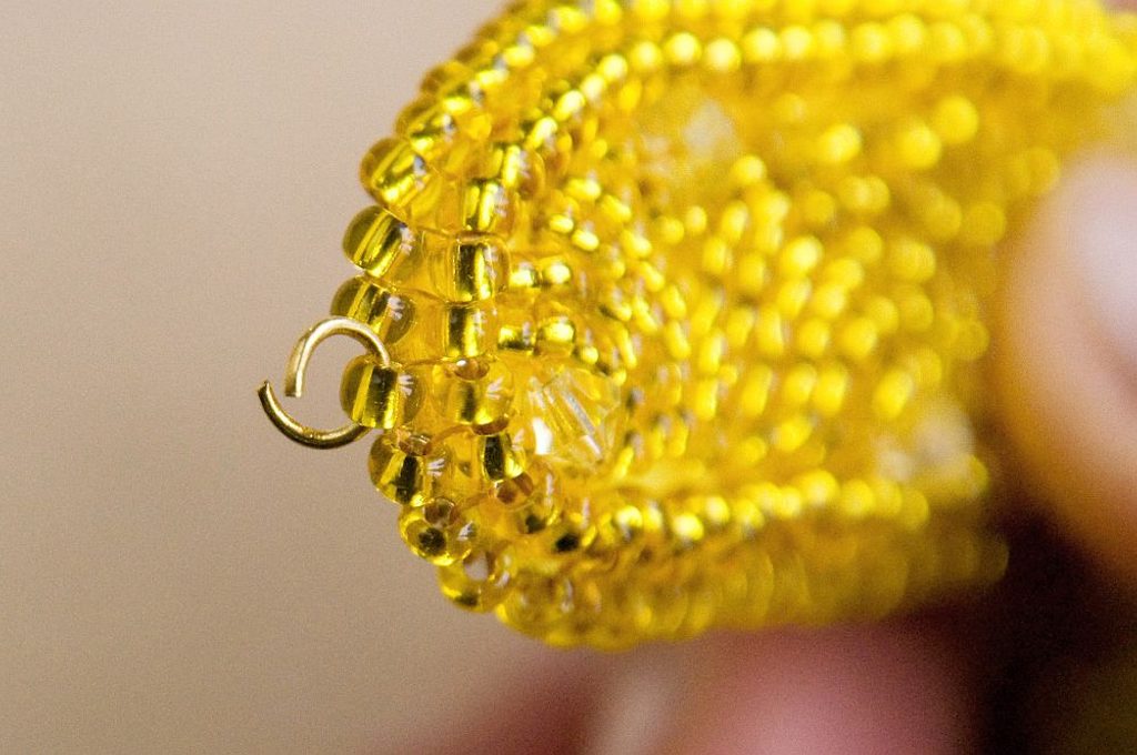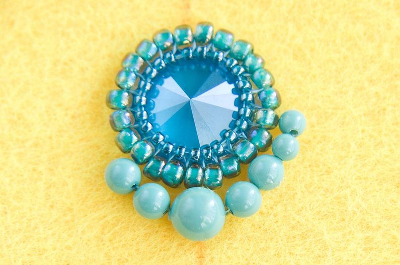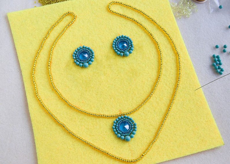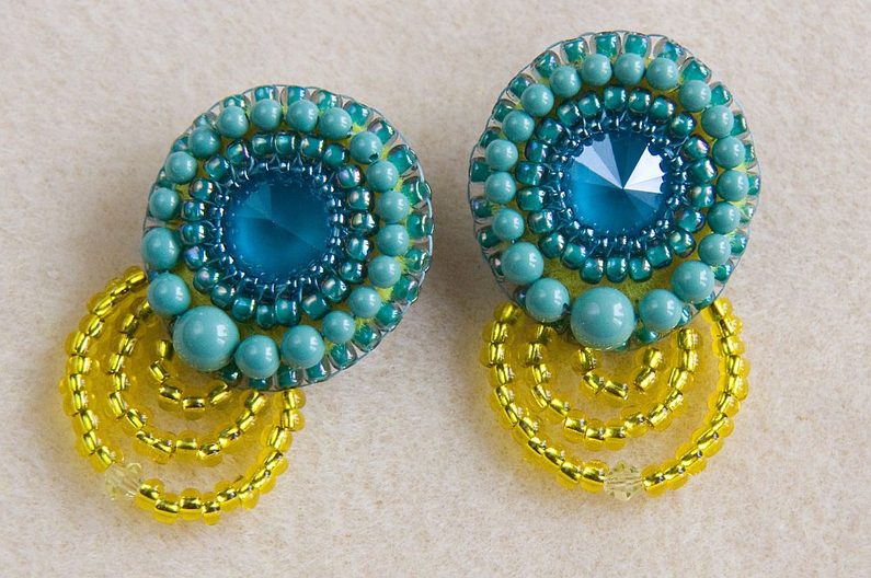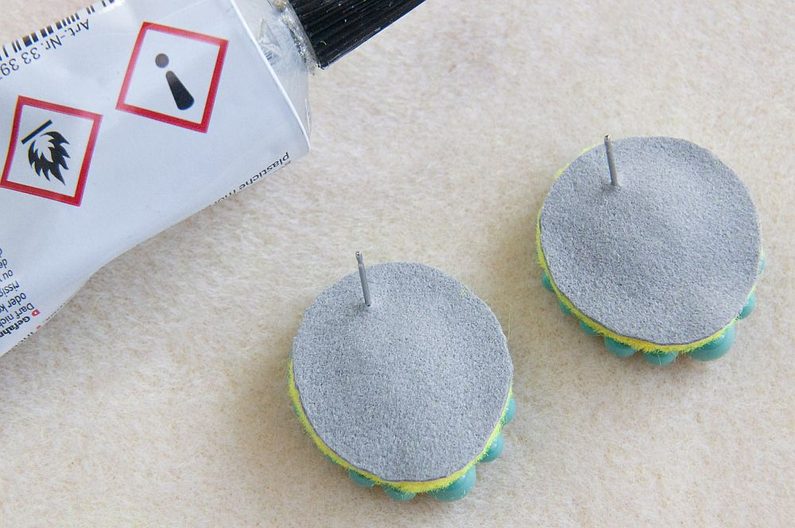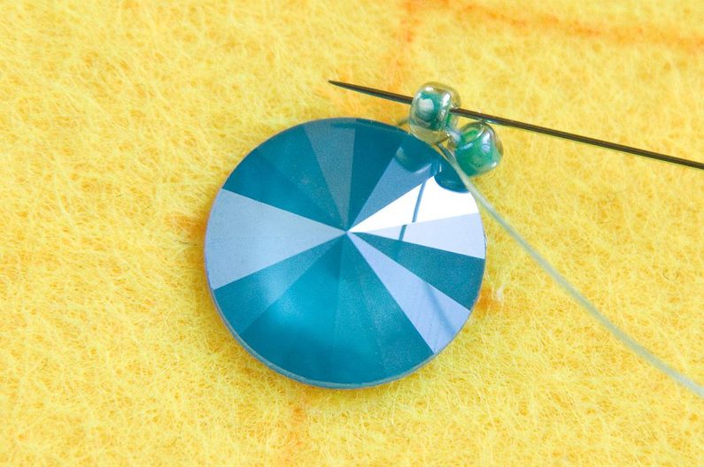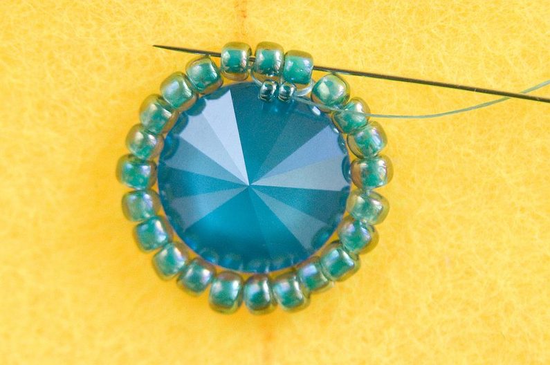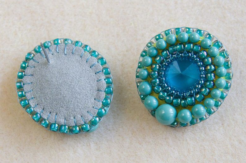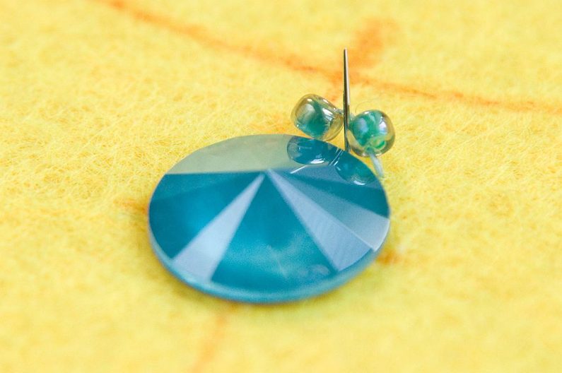 Nyní došijeme náušnice. Pokud jste nešili současně s obšíváním a zdobením rivolky na náhrdelníku, zopakujte Kroky 1-5.
