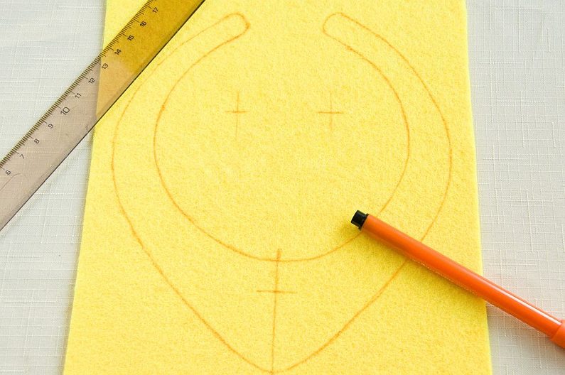 Ohraničíme si obvod náhrdelníku. Na pohodlně dlouhou nit (lze v průběhu šití navázat) uděláme uzlík a prošijeme se zespodu v místě nakreslené čáry.