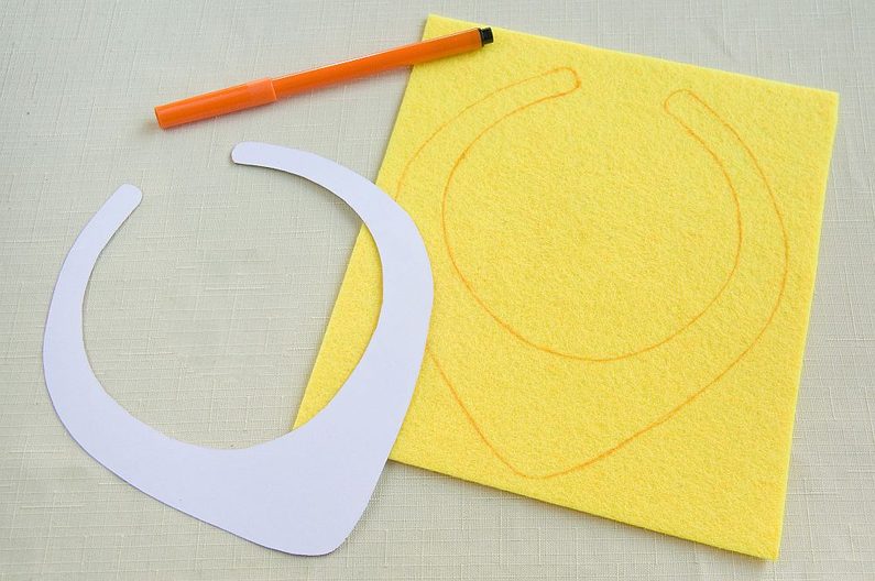 Na podklad pro výšivku (např. filc, cca 20x20cm) obkreslíme šablonu náhrdelníku (Obr. 1)