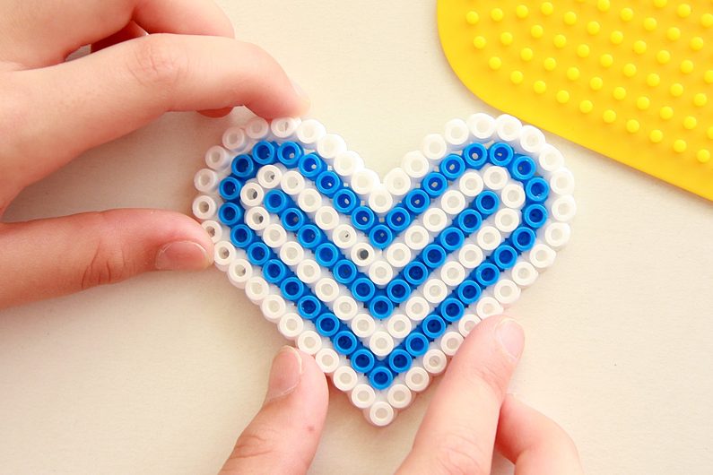 Až se korálky spečou po celé ploše dohromady, necháme obrázek pár minut vychladnout. Následně jej sundáme ze zažehlovací podložky. Pro větší pevnost můžete obrázek zažehlit i z druhé strany stejným způsobem. Zažehlené obrázky mají mnohdy tendenci se zlehka kroutit, můžete je ještě za tepla strčit pod knihy, aby byly po vychladnutí rovné.