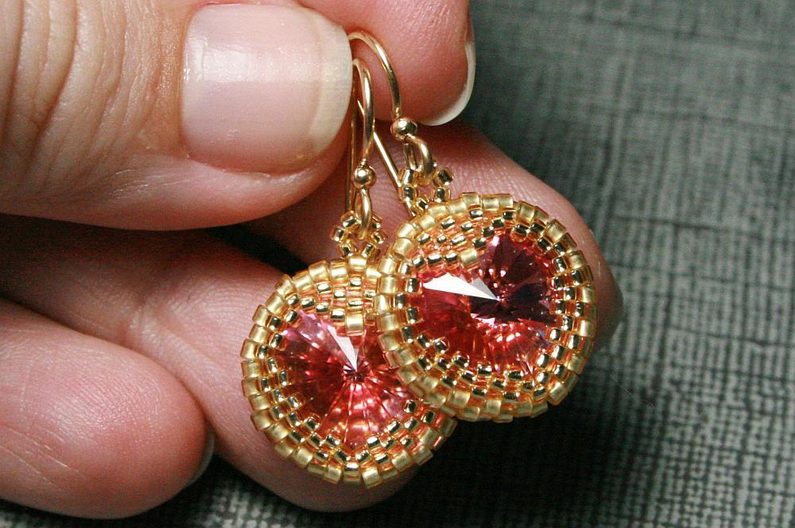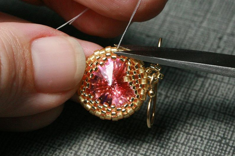 Zapošijeme nit a ustřihneme zbytky (Obr. 39). Stejně ušijeme i druhou náušničku. (Obr. 40-45)