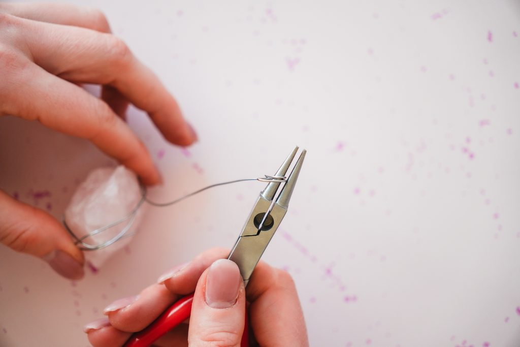 • Ten omotáme kolem surového minerálního kamene tak, aby nám část zůstala volná, směrem nahoru.