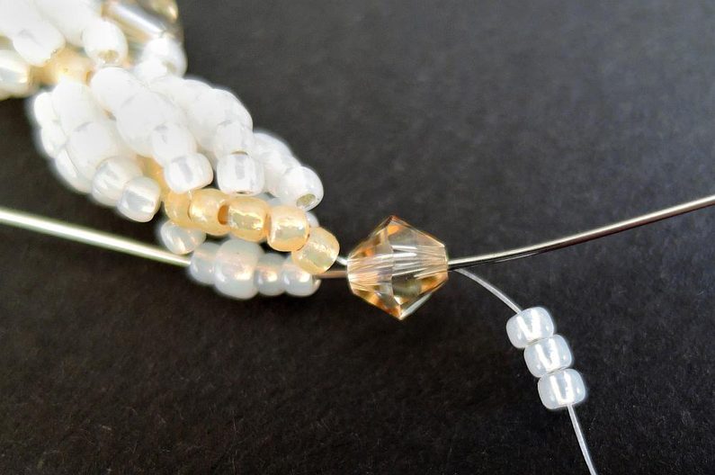 Tip – celou řadu rokajlů prošijte nití Nymo jednou dokola skrz – korálky se pěkně srovnají.