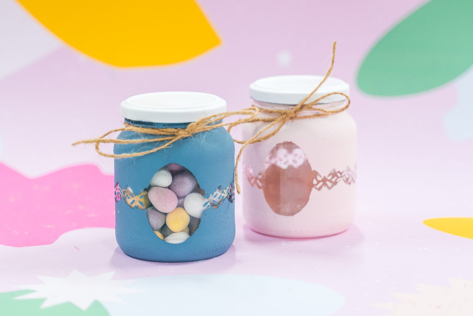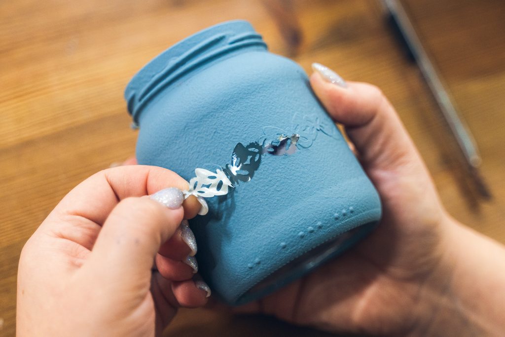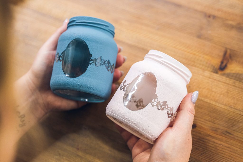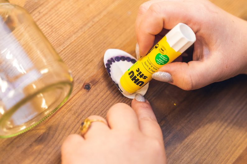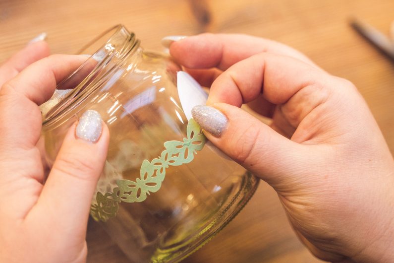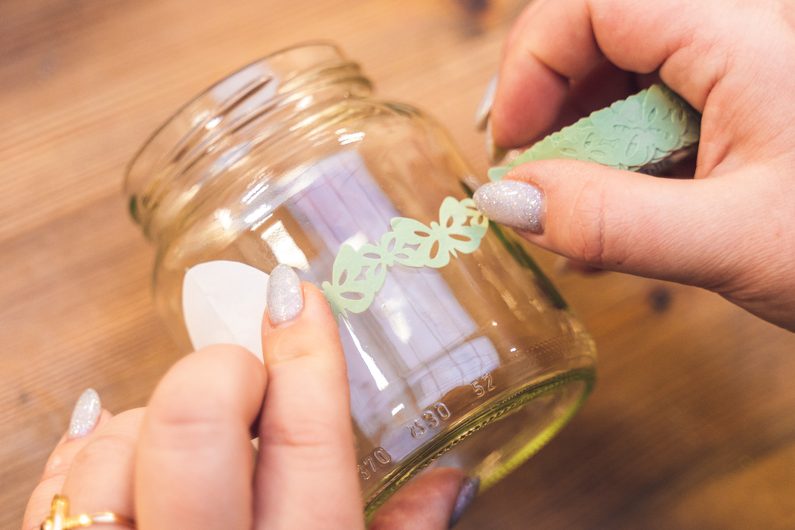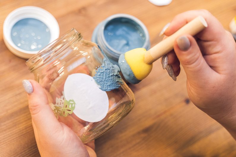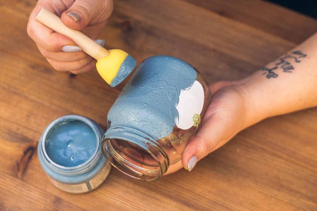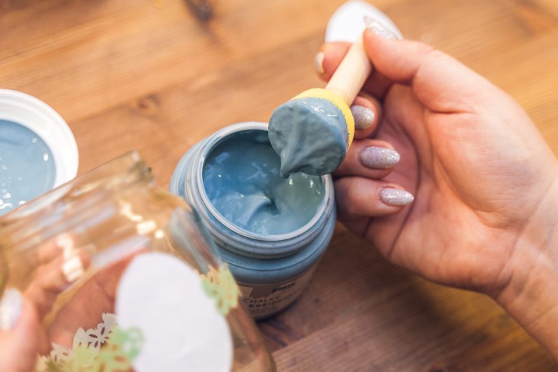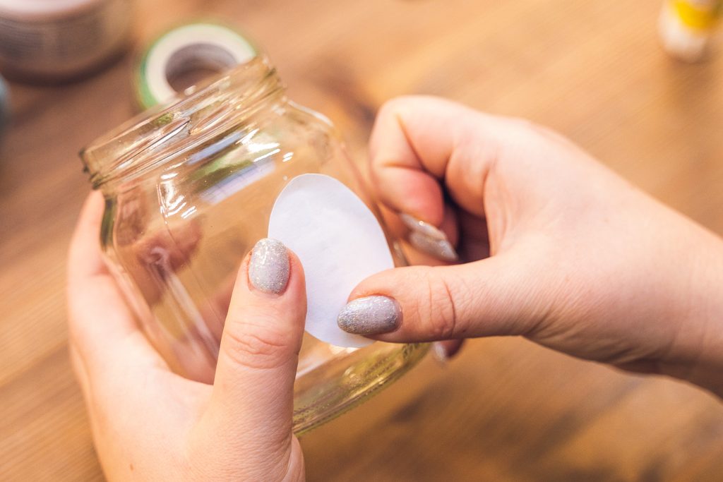 Jako první si v dobře větrané místnosti nebo venku nastříkáme barvou ve spreji víčka skleničky. Pravděpodobně bude třeba aplikaci opakovat ve více vrstvách. Mezi nimi je vždy potřeba nechat barvu dobře zaschnout.