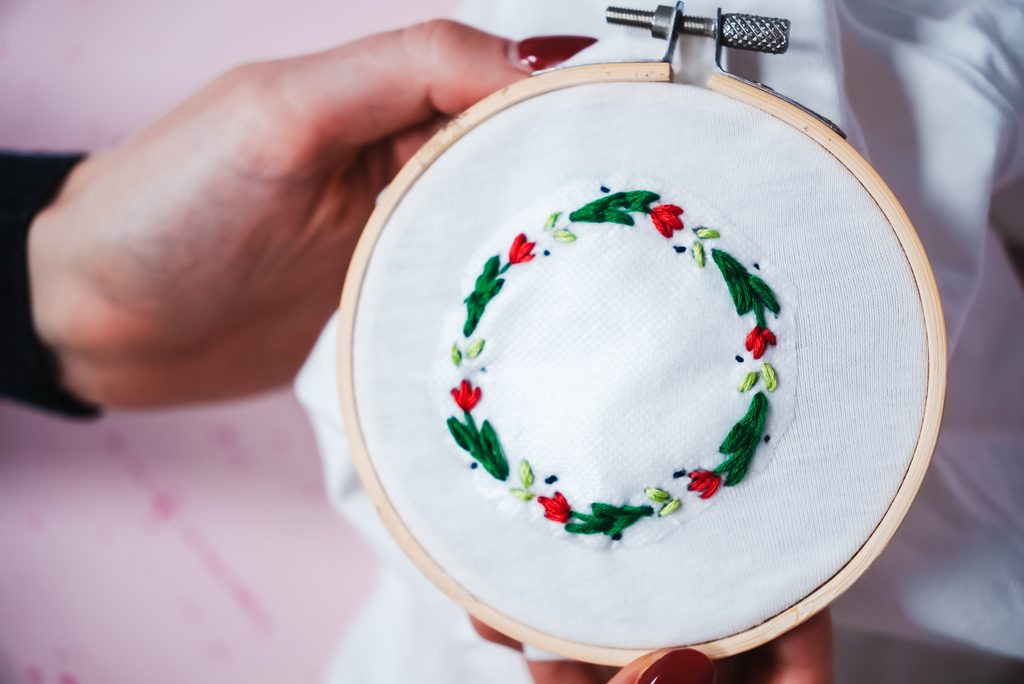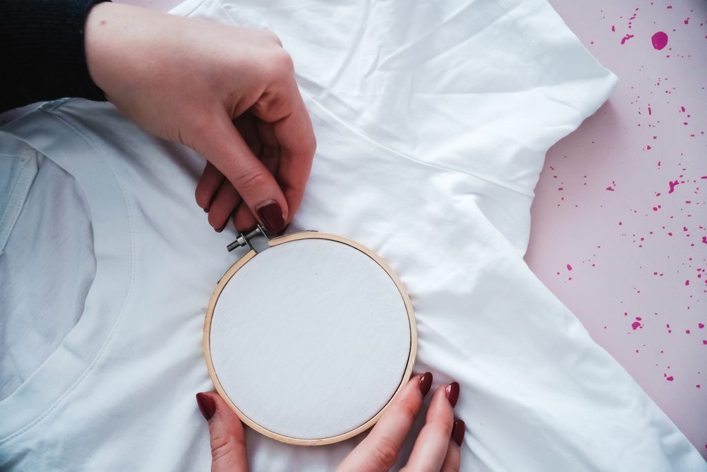 • Na zvolené místo na triku si připevníme vyšívací kruh.