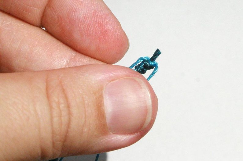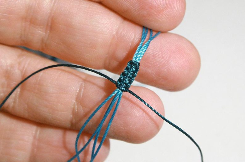 Dále uděláme 8-10 plochých uzlíku podle diagramu 2 (Obr. 19-22). Ustřihneme a zatavíme konce šňůry B (Obr. 23)