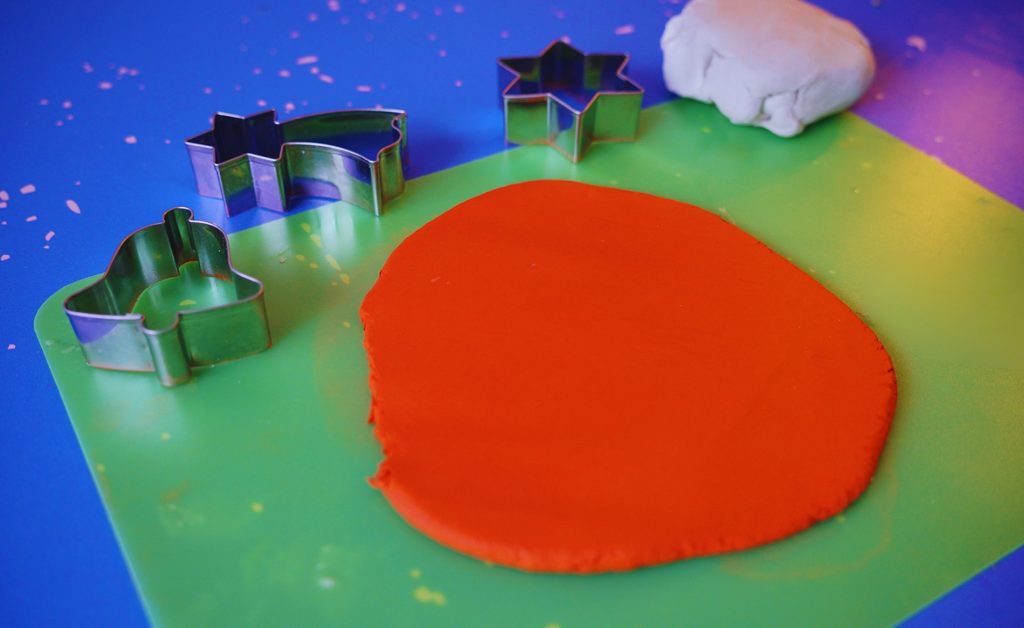 Samotvrdnoucí hmotu si nejprve v ruce prohněteme a pěkně vyválíme placku, která bude rovnoměrně vysoká cca 4-5mm