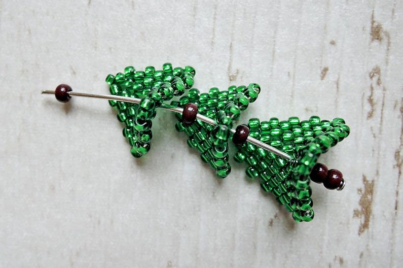Kompletace: Na ketlovací nýt si navlékněte velký rokajl – cca 2 až 3 kusy, nyní začněte přidávat patra od 1. směrem nahoru, mezi každé dvě patra (kromě mezi šestým a sedmým patrem) přidejte velký rokajl (obrázek 16). Takto poskládejte až nahoru, kam přidáte jednu červenou ohňovku. Nechte si kousek nýtu na vytvoření očka, zbytek odštípněte. Nyní si stočte očko, do kterého navlékněte afroháček, a dílo je hotovo. :)