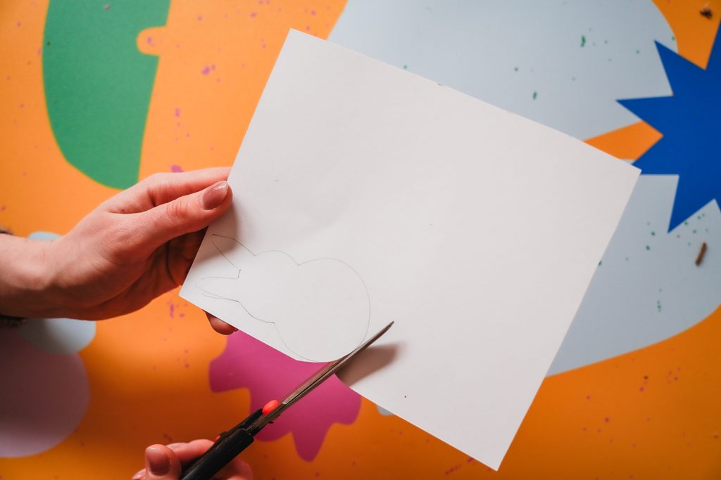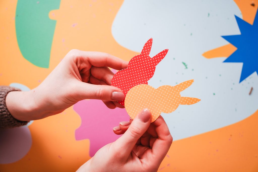• Z barevných papírů si vystřihneme zajíčka, každého jinak barevného.