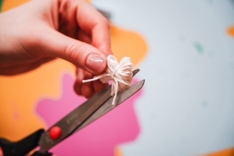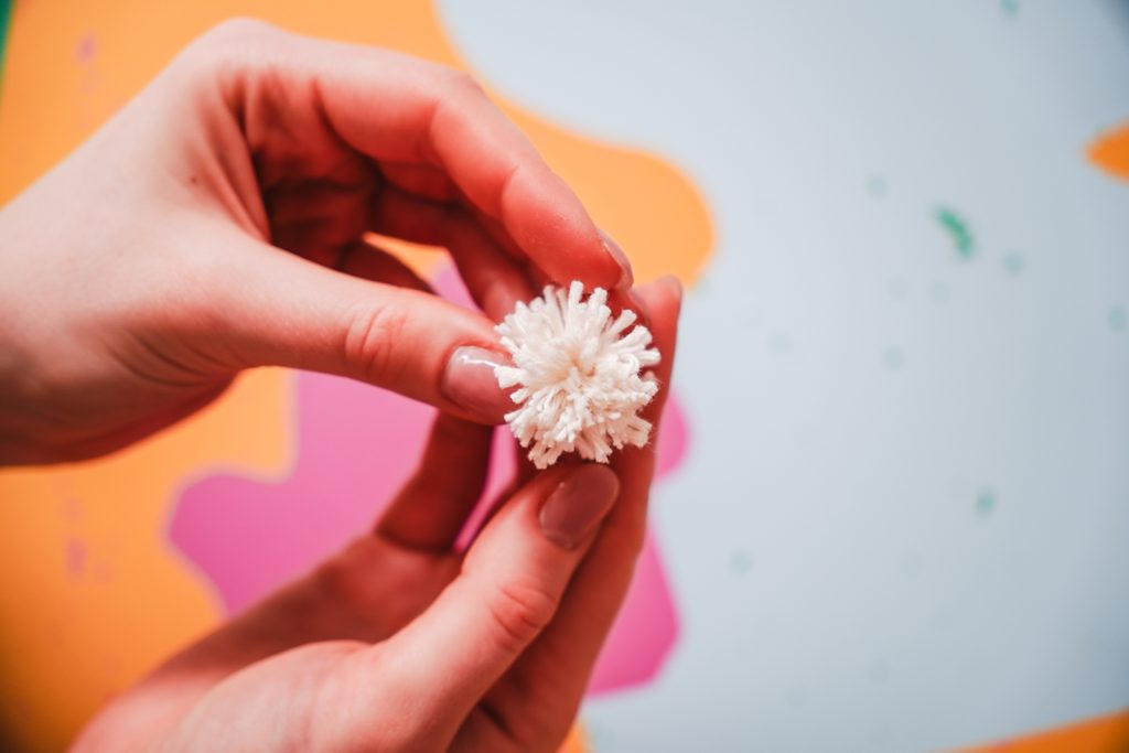 • Z bavlnky si pomocí vidličky uděláme bambulky podle tohoto návodu.