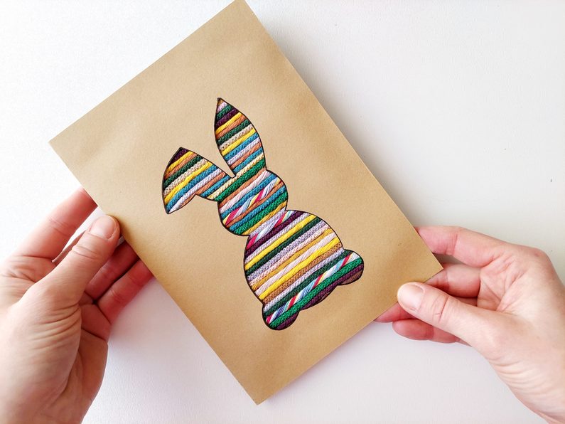 • Na přední stranu přání si nakreslíme obrys zajíčka. Můžeme si pomoci tak, že si zajíčka nakreslíme předem na papír a následně na přání obkreslíme.
