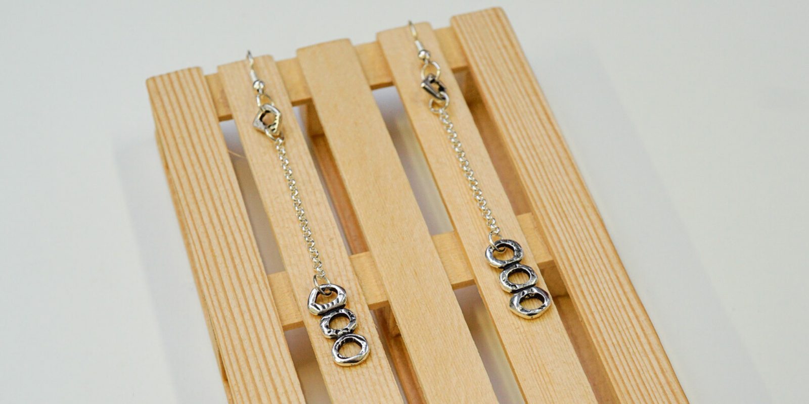 Neprve si uštípneme dva stejně dlouhé kusy řetízku a na konce připojíme spojovací kroužky.
