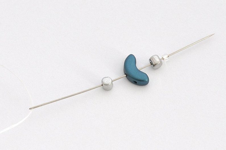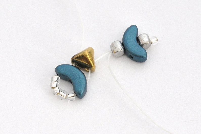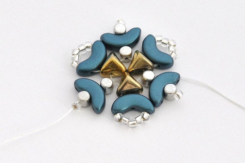 Nit provlečeme druhou krajní dírkou korálku Arcos® par Puca® a druhou dírkou korálku Super-Khéops® par Puca®.