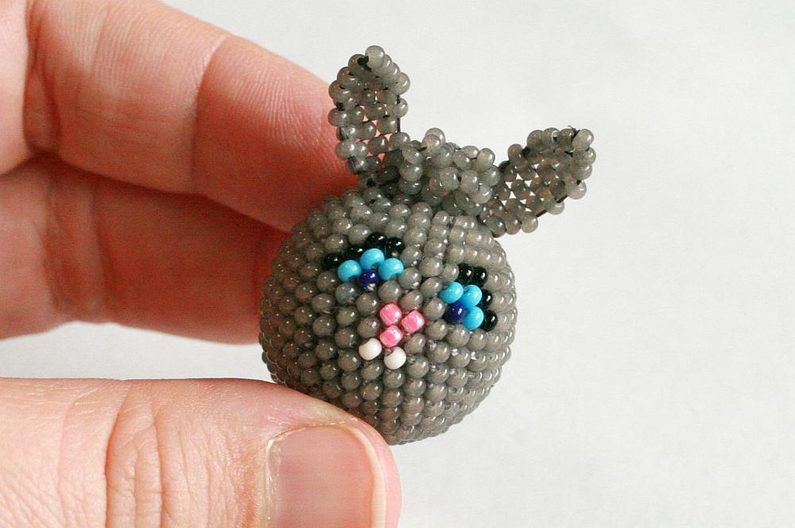 Podle schématu obšijte korálky kuličku 4 mm – z ní uděláte ocas pro zajíčka. Provlékněte kuličku ketlovací jehlou a vytvořte očko, do kterého pak dejte závěs.