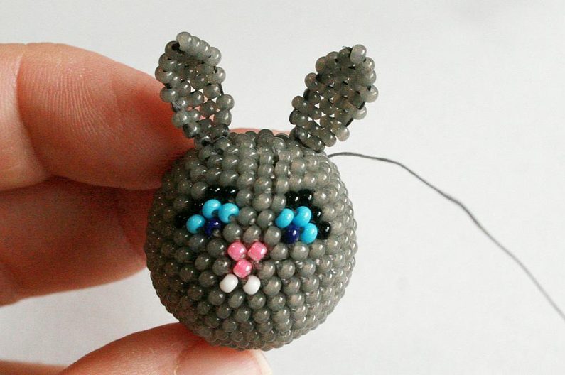 Také cihlovým stehem ušijte dvě ouška, která obejdete dokola nití přes okrajové korálky a stáhnete do správného tvaru